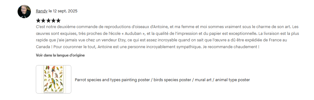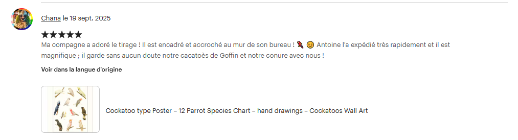 Chaque poster AntoineParrots est imaginé et illustré par Antoine, passionné de perroquets et d’art visuel.